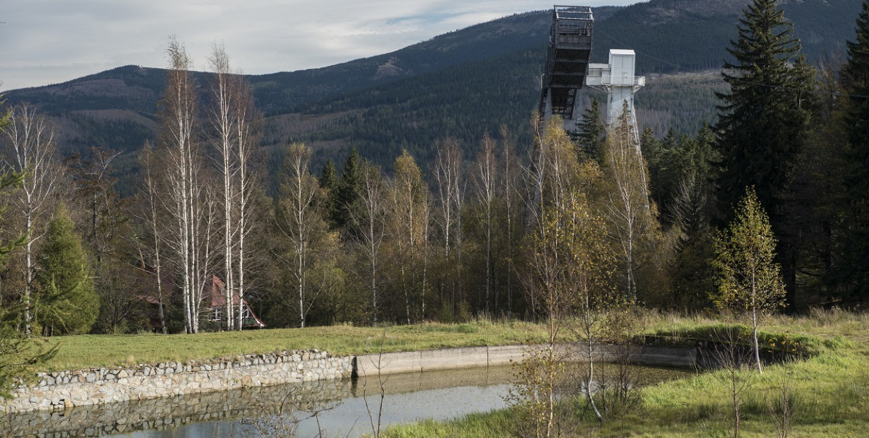 Punkt widokowy: skocznia ma około 54 m wysokości i oferuje znakomite panoramy na Karpacz i Karkonosze.