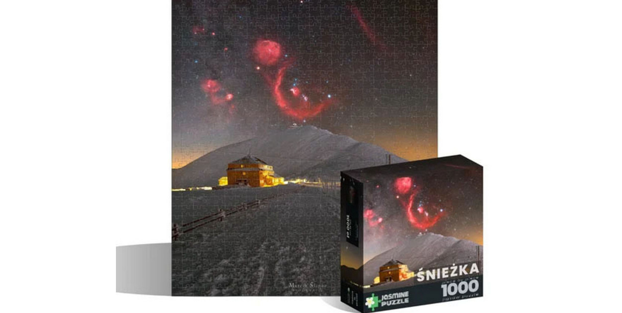 Jeśli kochasz Karkonosze i chcesz zabrać ich kawałek do domu – te puzzle są dla Ciebie. „Śnieżka Kosmiczna” to wyjątkowy zestaw 1000-elementowych puzzli przedstawiających nocny krajobraz ze Śnieżką i Domem Śląskim na pierwszym planie, a w tle rozgwieżdżone niebo z konstelacją Oriona.