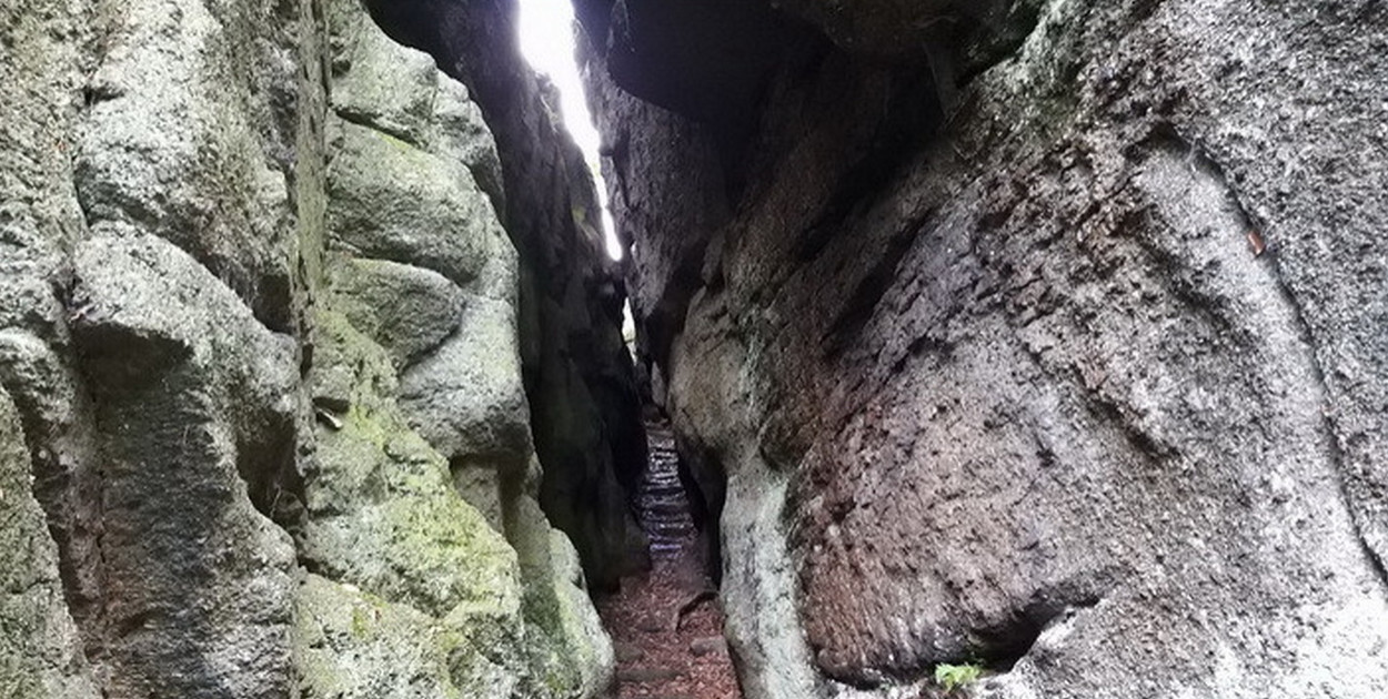 Przy okazałym dębie kierujemy się do góry. Idziemy stromą drogą, aż do charakterystycznego drogowskazu, gdzie skręcamy w prawo na boczną ścieżkę, która zaprowadzi nas do Rozpadliska. W ostatnim czasie udało się ponownie udostępnić to miejsce przybywającym w Karkonosze.